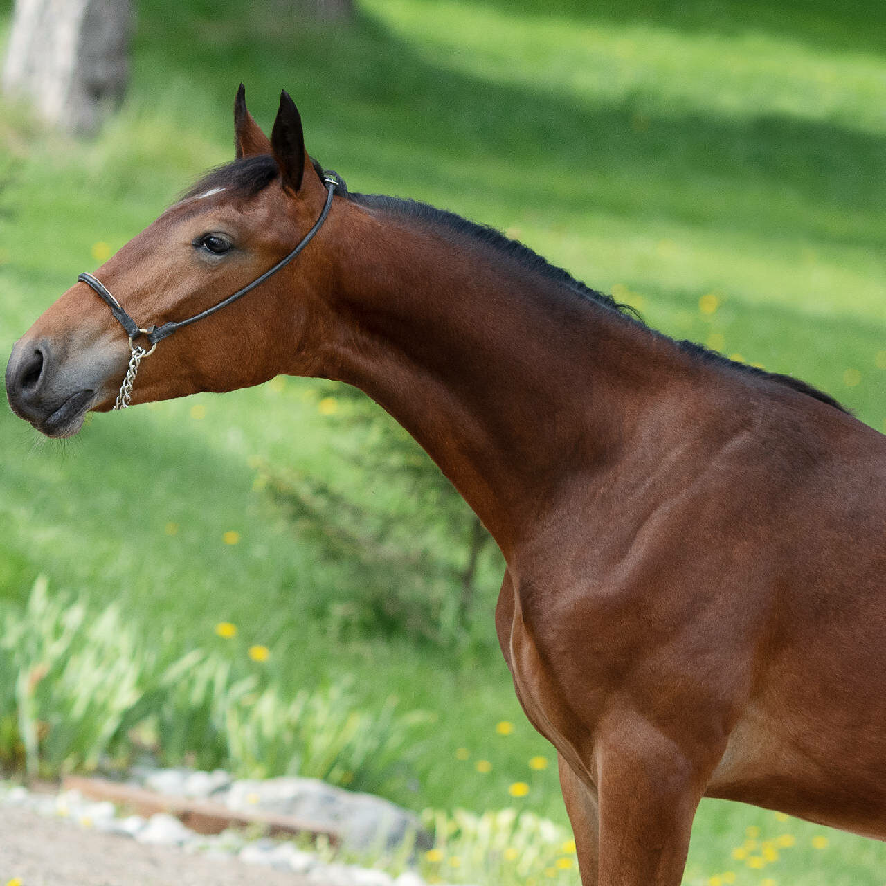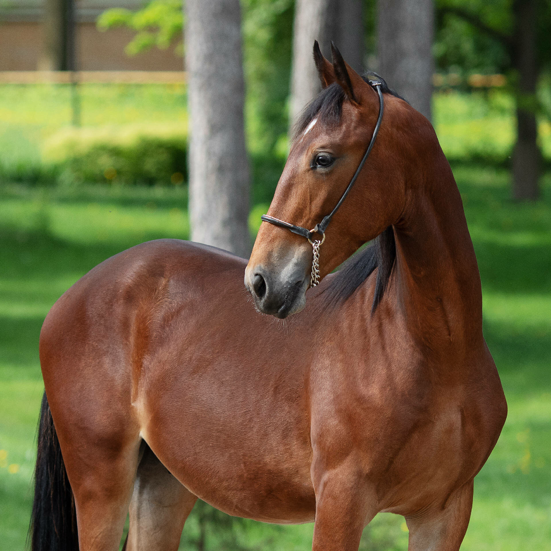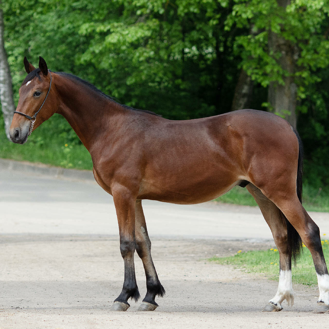 Байконур еще не сформировавшийся, крупный, растущий жеребчик. Плотной, крепкой конституции на прочных конечностях и хороших длинных движениях. Инбреден на Уклона 2.04,1 в степени III – III.