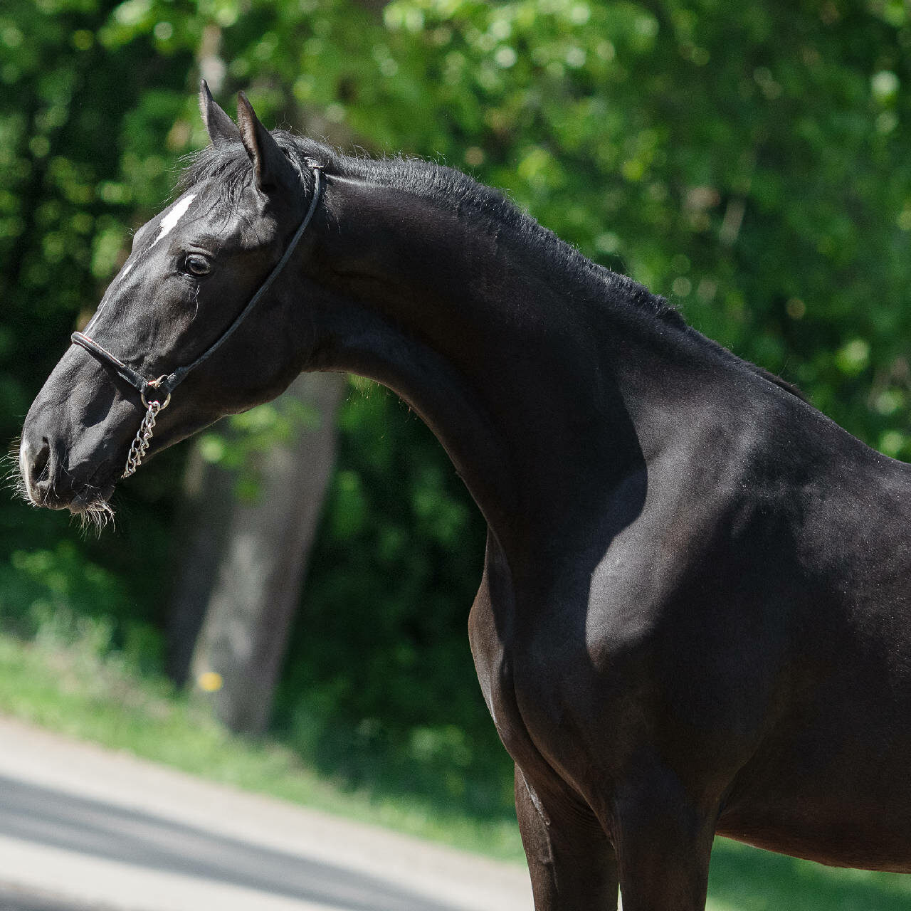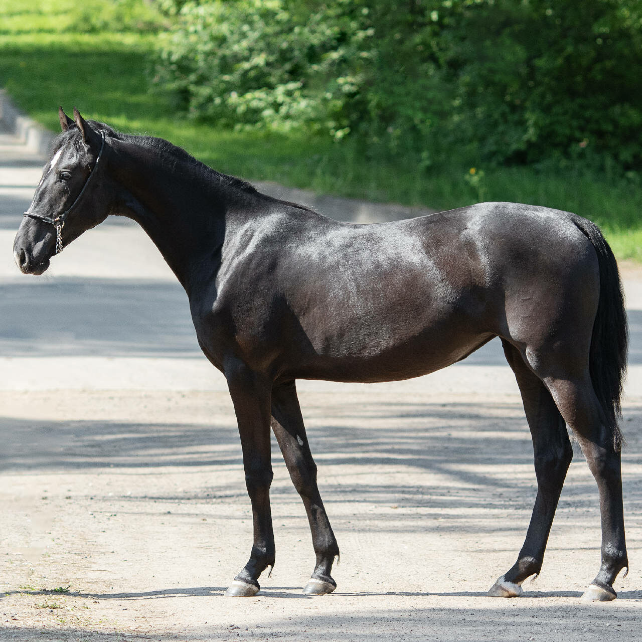 Вороная кобылка 2023 г.р. (Махараджа – Киприда), семейство Кадетки, гнездо Кубани.