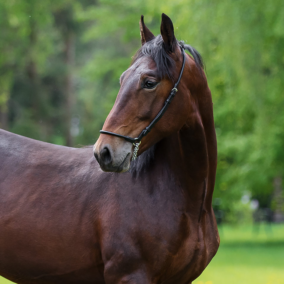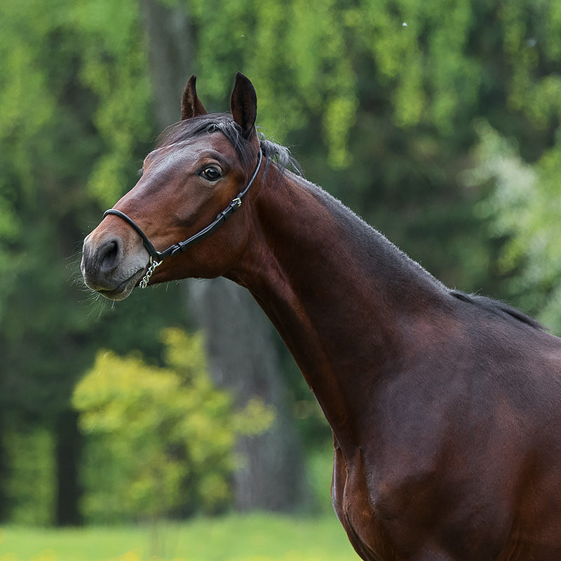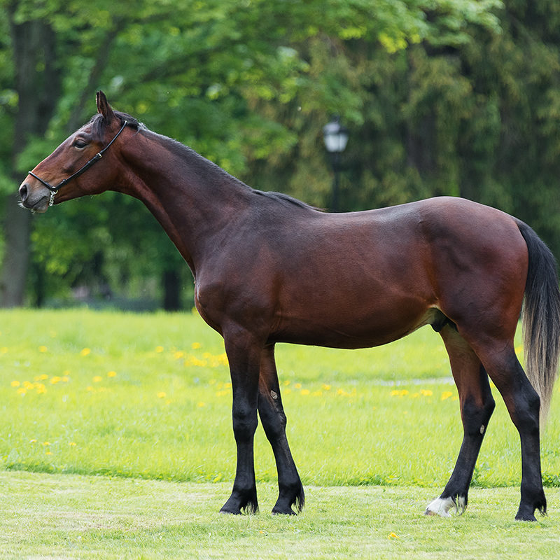 Крепкий, костистый жеребец на отличных движениях. Высокий каретный ход с большим импульсом. Настойчивый, упорный, с характером бойца, станет не только хорошей беговой лошадью, но и пойдет в драйвинг и экипажную езду.